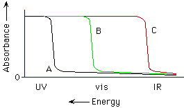 2. (Spectroscopy; Ch. 7 "Companion") Knowing diamond is colorless, which curve best represents the absorption spectrum of diamond (see below)?