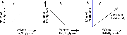 The amount of precipitate collected from the fixed amount of Na2SO4 solution as the Ba(NO3)2 is added indefinitely will look like which graph below?