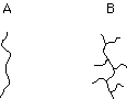 7. (Polymers) Some polymerization reaction conditions lead largely to linear chains of polyethylene, A, while other conditions cause considerable branching, B. Which structure corresponds to high density polyethylene (HDPE)?
