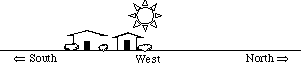 9. On about September 22, the Sun sets directly to the west as shown on the diagram below. Where would the Sun appear to set two weeks later?