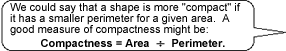 A better measure of compactness might therefore be area ÷ (perimeter)2.